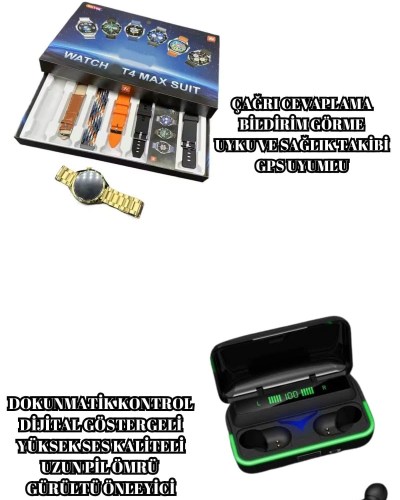 Powerbank Bluetooth Kulaklık Ve Akıllı Saat 7 Kordonlu Metal Kordon Plastik Kordon