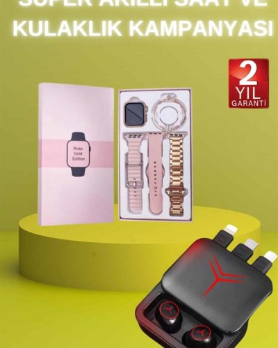 AKILLI SAATYeni Nesil Mini Kadın Akıllı Saat, şıklığı ve fonksiyonelliği bir araya getiren tasarımıyla kadınlar için ideal bir seçenek sunuyor. Almanya üretimi ultra dayanıklı model, özel wireless şarj özellikleriyle öne çıkıyor ve Türkçe menüsü sayesinde kullanıcı dostudur. Kutu içeriğinde, mini akıllı saat, 3 farklı kordon, hediye bileklik, wireless şarj kablosu ve kullanım kılavuzu bulunmaktadır. Şık pembe kutusu, hediye olarak tercih edilmesini sağlayan bir özellik taşır. 41 mm kavisli oval kenarlı yeni tasarımı ve 1,70 inç AMOLED ekranı ile yüksek çözünürlükte HD görüntü sağlar.Saat, nabız ölçer, uyku izleyici, kan basıncı, tansiyon, EKG ve vücut sıcaklığı ölçer gibi sağlık izleme özellikleriyle sağlığınızı takip etmenizi sağlar. 117 farklı spor modu ve adım, kalori, kalp ritmi ölçme gibi özellikler ile aktivite takibini oldukça detaylı yapabilirsiniz. Ayrıca akıllı hatırlatıcılar sayesinde su içme ve hareketsizlik gibi hatırlatmalar alabilir, tüm bildirimleri ve mesajları anında saatinizde görebilirsiniz.Bluetooth bağlantısı ile yüksek kaliteli müzik dinleyebilir ve uzaktan fotoğraf çekme özelliği ile fotoğraflarınızı kolayca çekebilirsiniz. Suya dayanıklı yapısı, günlük kullanımda sıklıkla tercih edilmesini sağlar; ancak deniz ve havuz gibi basınçlı suya karşı su geçirmez.Saatin sunduğu diğer özellikler arasında Türkçe ve çoklu dil desteği, saatimi bul, telefonumu bul, alarm, kronometre, hava durumu, hesap makinesi gibi fonksiyonlar bulunur. Kordonu değiştirilebilir, bu sayede kişisel tercihlere göre tasarımı özelleştirilebilir. 24 ay garanti süresi ile kullanıcılarına güvenli bir deneyim sunar.KULAKLIKKendinden Kablolu Özel Powerbank Modeli, yüksek kullanım kolaylığı ve çok fonksiyonluluğu bir arada sunuyor. Type-C, Lightning ve Micro USB kablolarıyla tüm cihazlarınızı şarj etme imkanı sağlar. Oyuncular için özel olarak tasarlanan ses gecikmesiz tam senkronizasyon özelliği ile oyun deneyiminizi kesintisiz bir şekilde sürdürmenize olanak tanır.Aktif gürültü engelleyici özelliği sayesinde dış ortamdan gelen gürültüyü tamamen engeller, böylece müzik dinlerken ya da oyun oynarken odaklanmanızı sağlar. LED göstergesi, şarj durumunu sürekli olarak takip etmenizi sağlar, böylece kulaklıklarınızın ne zaman şarj edilmesi gerektiğini kolayca görebilirsiniz.Bu kulaklıkların şarj kutusu, ayrıca bir powerbank olarak da kullanılabilir. Bu sayede hem kulaklıklarınızı hem de telefonunuzu aynı anda şarj edebilirsiniz. Tüm IOS ve Android telefonlarla uyumludur, Bluetooth 5.2 bağlantısı ile yüksek çözünürlüklü Ultra HD ses kalitesi sunar.Ergonomik tasarımı sayesinde kulaklarınıza tam uyum sağlar ve uzun süreli kullanımlarda rahatlık sunar. Dokunmatik kontrolleriyle müzik oynatmayı başlatabilir, duraklatabilir ve çağrıları yönetebilirsiniz. 1 saatlik şarj süresi ile kulaklıklarınızı hızlıca şarj edebilirsiniz.Powerbank kapasitesi 1200 mAh’dir ve otomatik bağlantı özelliği sayesinde, cihazınıza bir kez bağlandıktan sonra her seferinde otomatik olarak bağlanır. Çift mikrofonu ile telefon görüşmelerinde kaliteli ses sunar ve suya dayanıklı özelliği ile dış mekan kullanımına uygun hale gelir.Portatif şarj istasyonunun kapağını açar açmaz, kulaklıklarınız cihazınıza bağlanır, uzun süreli bağlanma bekleme süresi ortadan kalkar.
