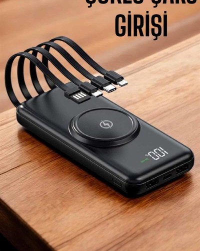 Kablosuz Çoklu Şarj Girişli 10.000 Mah Kablolu Powerbank Taşınabilir
