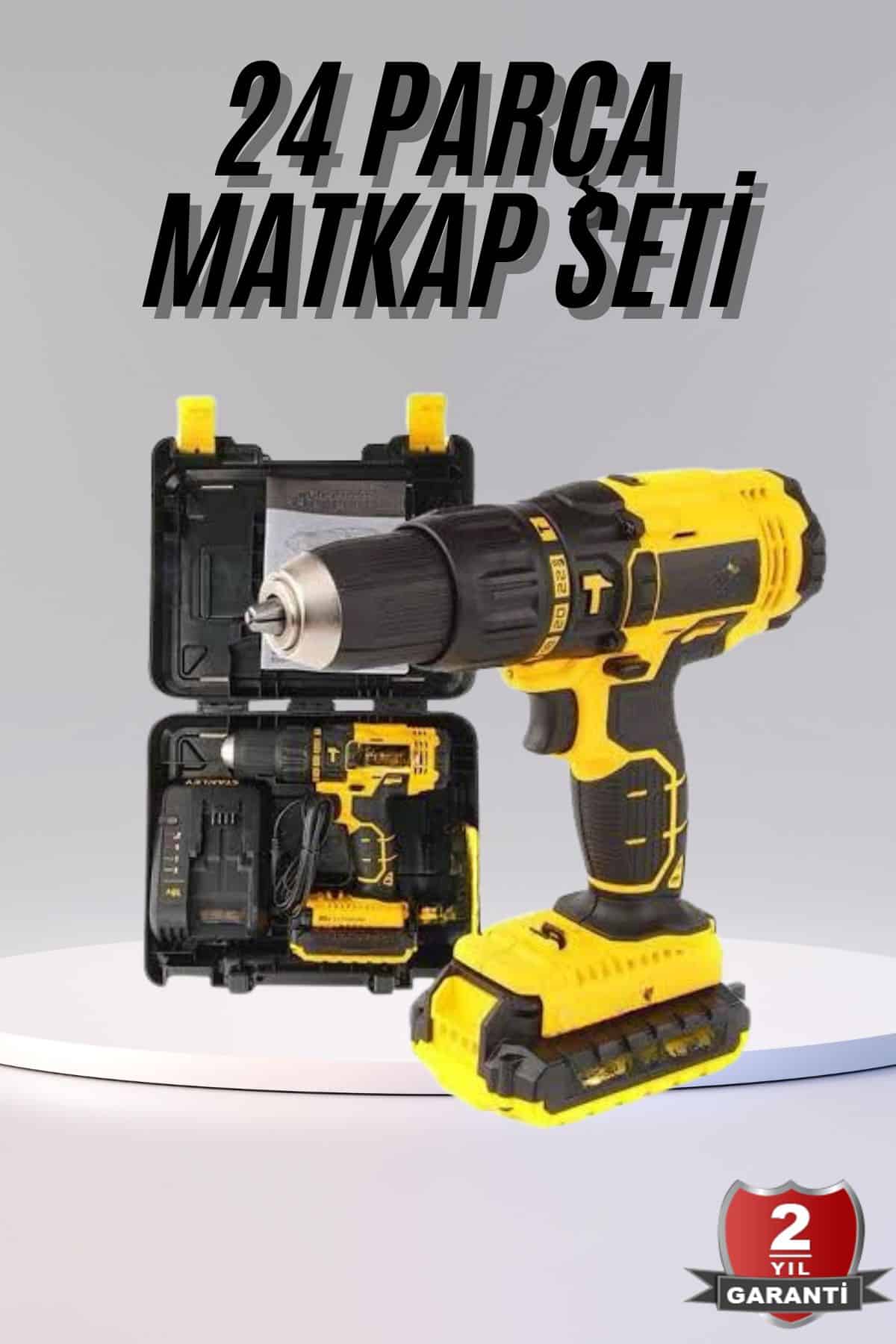 Profesyonel Çift Bataryalı Akülü Vidalama Şarjlı Matkap 24 Parça