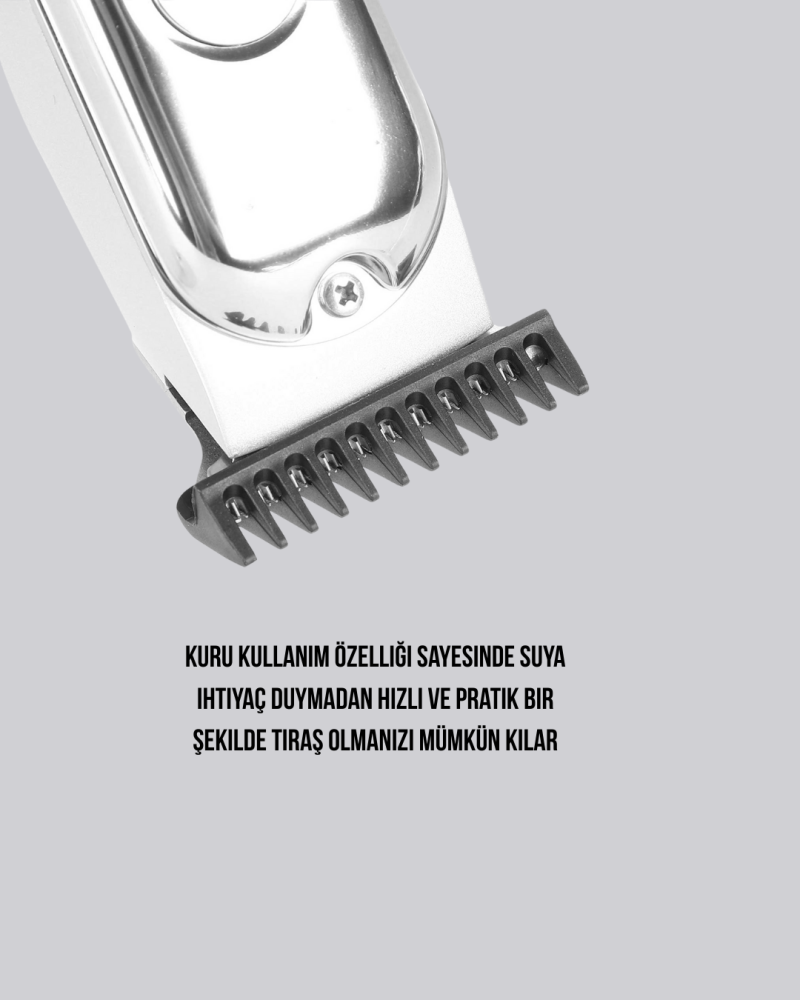 Bu profesyonel saç kesme makinesi, yüksek güçlü motoru sayesinde uzun süreli ve etkili kullanım sağlar. Tamamen metal gövdesi rahat bir tutuş sunar ve ergonomik yapısı ile kullanımı kolaydır. 1,5 saat şarj ile 120 dakika kesim süresi sunan yüksek performanslı lityum pil ile uzun süre kesintisiz çalışabilirsiniz. Karbon çelik kesim başlığı, saçları kırpmaz, sıkıştırmaz ve temiz kesim yapar. Düşük frekanslı motor teknolojisi sayesinde gereksiz gürültüyü azaltır, böylece konforlu ve sessiz bir kullanım deneyimi yaşarsınız. Ayarlanabilir kesim uzunluklarıyla farklı stiller yaratmak mümkün olup, ince kesim bıçakları sayesinde hassas ve profesyonel sonuçlar elde edebilirsiniz. Dayanıklı yapısı ve üstün performansı ile hem ev kullanımı hem de profesyonel berberler için ideal bir tercihtir. Ayrıca sevdikleriniz için şık ve kullanışlı bir hediye seçeneği sunar.