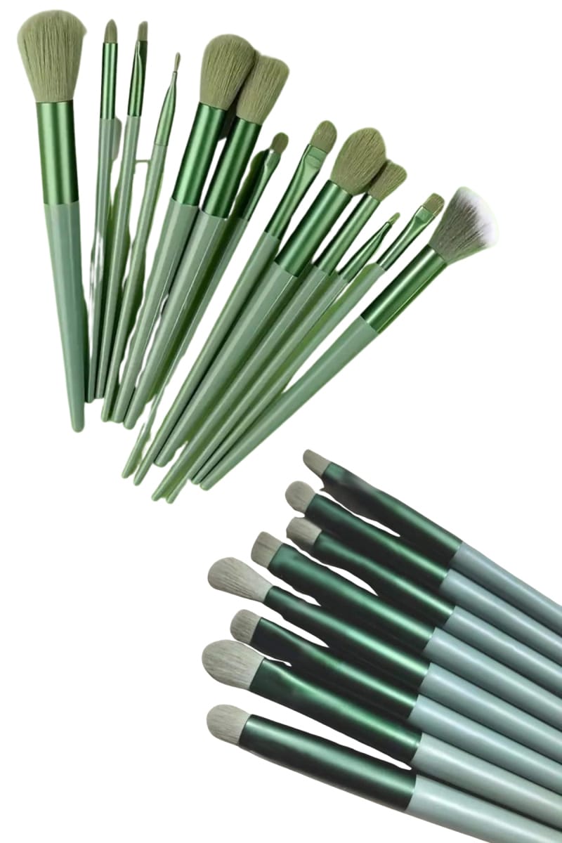 Makyaj Fırça Seti Yeşil 13 Parça Fondöten Fırçası Allık Fırçası Far Fırçası