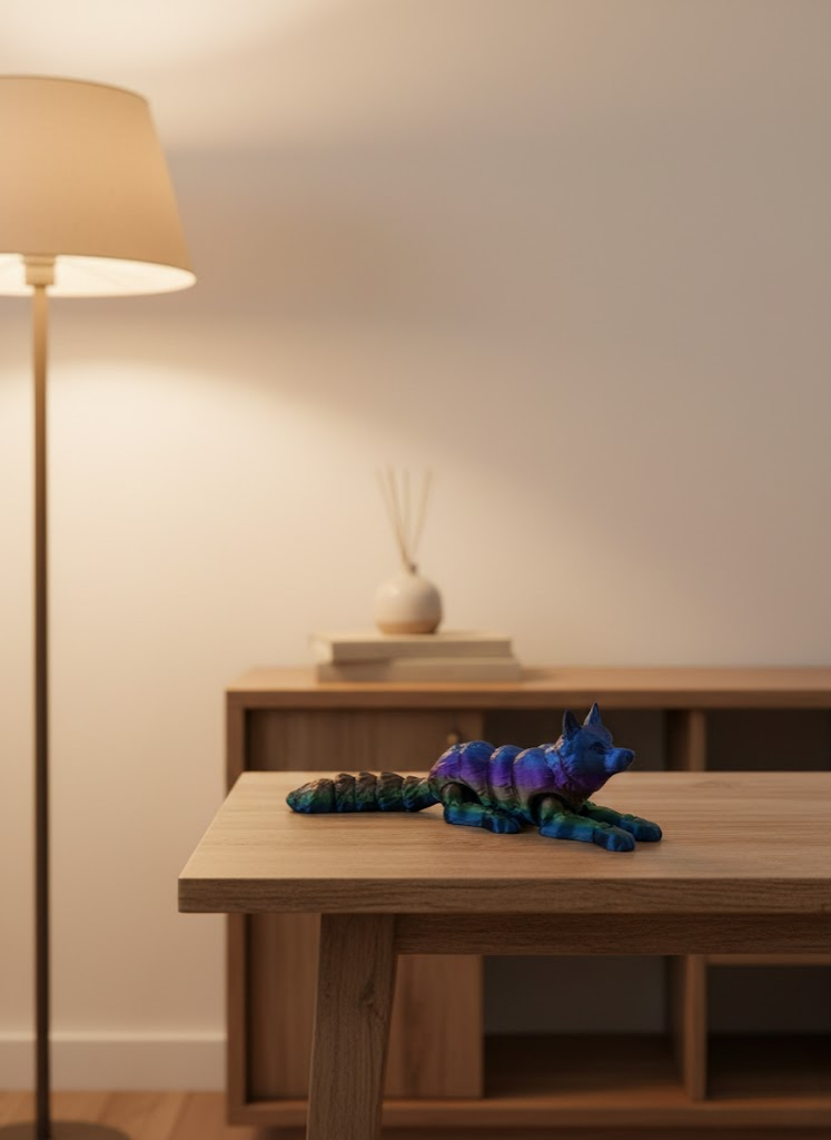 Bu hareketli kurt figürü, rengarenk gövde yapısı ve detaylı yüz çizgileriyle görsel olarak oldukça etkileyicidir. Ayarlanabilir eklemleri sayesinde ister oturur, ister yürür, ister bekleme pozisyonu gibi farklı şekillere getirilebilir. 10×24 cm boyutu dekoratif kullanım için ideal olup fazla yer kaplamaz. Rainbow renk paleti modern dekorasyon tarzlarıyla uyumlu şekilde tasarlanmıştır. Çocuklar için eğlenceli, yetişkinler için koleksiyon değeri taşıyan bu figür, ofis ya da ev ortamında masanıza karakter katar. Hafif yapısı sayesinde kolay taşınabilir ve farklı alanlarda kullanılabilir. Hem oyuncak hem dekoratif figür olarak çok yönlü bir üründür.