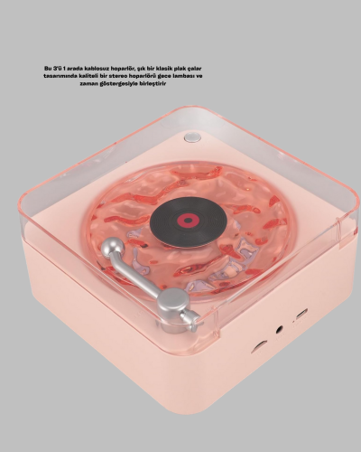 Modern yaşam alanlarına nostaljik bir dokunuş! Bu retro tarz hoparlör, güçlü stereo ses sistemi, yumuşak gece ışığı ve zaman göstergesi özelliklerini bir arada sunar. Kristal netliğinde ses teknolojisi, müzikte en ince detayları bile duyabilmenizi sağlar. Su dalgası efektli aydınlatma, sıcak bir ortam yaratır. Yatak odası, oturma odası veya çalışma alanları için hem estetik hem işlevsel bir seçimdir. Hediye olarak da oldukça özel bir tercihtir.