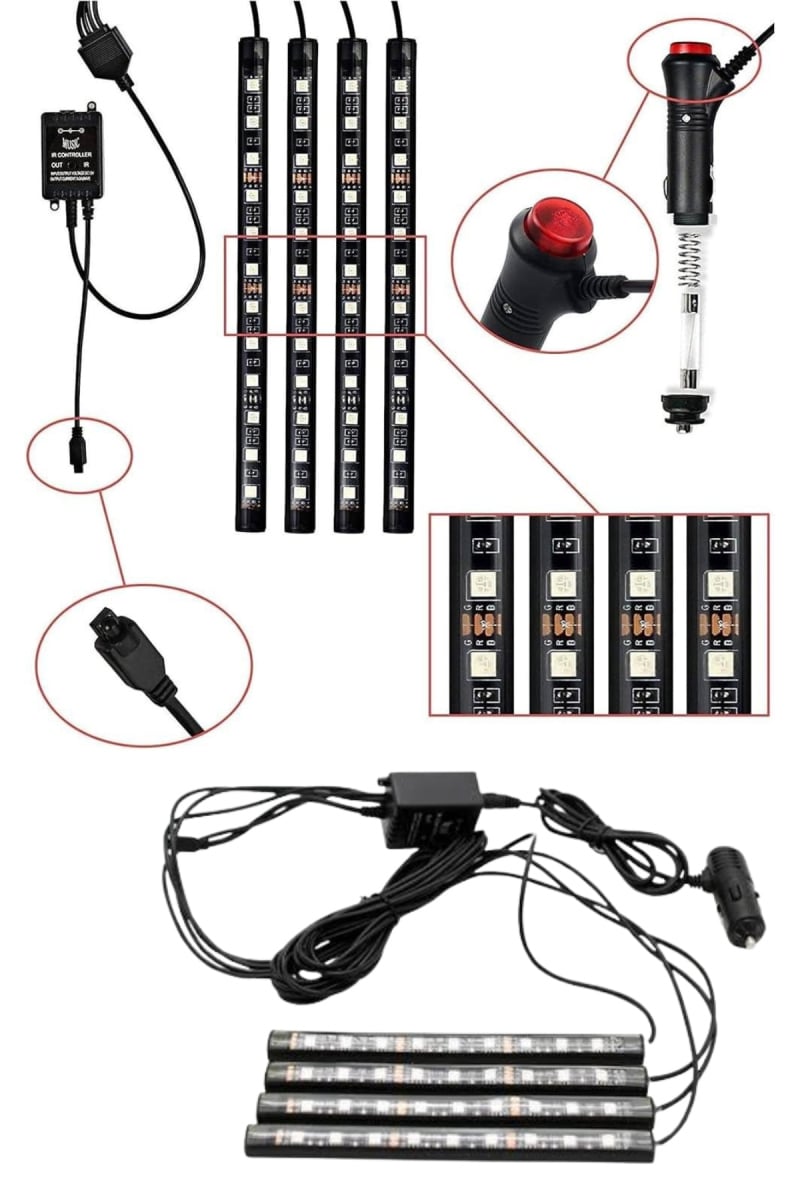 Araç İçi Ayak Altı 12’li Şerit Led Işık Uzaktan Kumandalı RGB Işıklı Ses ve Müziğe Duyarlı