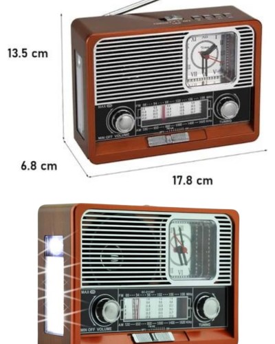 Retro tasarımı ile ev dekorasyonuna nostaljik bir dokunuş ekleyen bu radyo, yalnızca bir ses sistemi değil, aynı zamanda estetik bir aksesuar olarak da öne çıkar. Ahşap görünümlü ve klasik çizgilere sahip tasarımı, vintage tarzı sevenler için mükemmel bir seçenek oluştururken, taşınabilir yapısı sayesinde istenilen her yere kolayca götürülebilir. Saat fonksiyonu ile zamanı takip etme imkanı sunan bu model, aynı zamanda fener özelliği ile karanlık ortamlarda ekstra aydınlatma sağlayarak pratik bir kullanım sunar. Kamp yaparken, seyahatlerde ya da elektrik kesintilerinde fener fonksiyonu ile hayatı kolaylaştıran bu radyo, hem nostaljik hem de modern detaylarıyla her an yanınızda olmaya hazır.