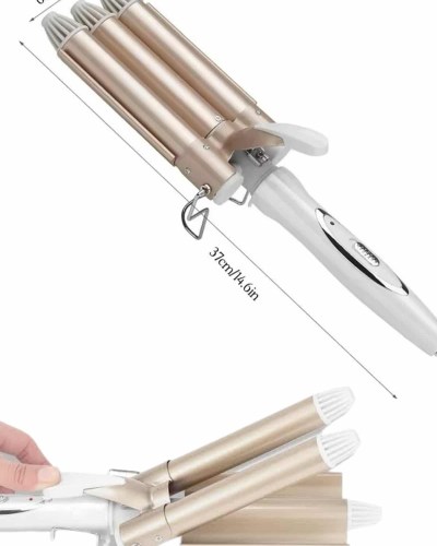 Profesyonel seramik wag su dalgası saç maşası, saçlarınıza doğal ve kalıcı dalgalar kazandırmak için özel olarak tasarlanmıştır. 25 mm çapındaki üçlü fıçı sistemi, su dalgası efektini mükemmel şekilde yansıtarak hem hacimli hem de belirgin bukleler oluşturur. Orta ve uzun saçlar için ideal olan bu maşa; düğün, davet, parti ya da günlük kullanımda zarif ve dikkat çekici bir görünüm elde etmenizi sağlar. 170°C ve 220°C olmak üzere iki kademeli sıcaklık ayarı sayesinde, saç tipinize en uygun ısıyı seçebilir; ister ipeksi hafif dalgalar ister belirgin ve kalıcı bukleler yaratabilirsiniz.