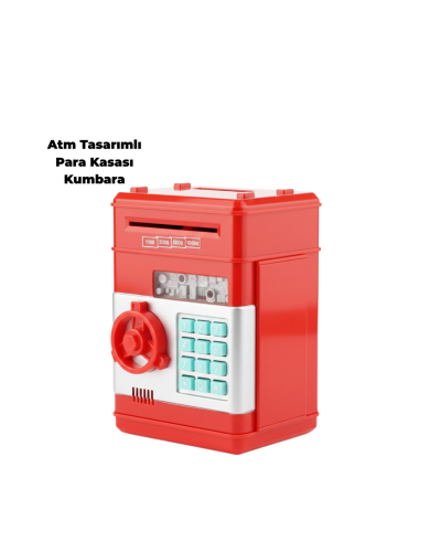 Bu kırmızı ATM görünümlü şifreli kumbara, hem eğitici hem de dekoratif bir üründür. Para kasası tasarımı, otomatik para girişi ve şifreli güvenlik sistemiyle öne çıkar.