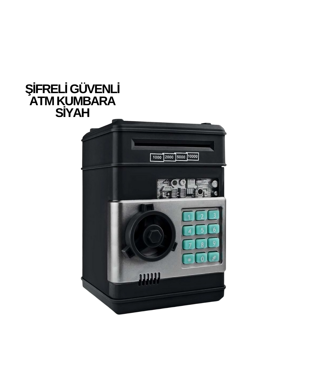 Geniş hazneli bu şifreli ATM tarzı elektronik kumbara, para biriktirmeyi hem güvenli hem de eğlenceli hale getirir. ATM mekanizması, kâğıt paraları otomatik olarak içine çeker.