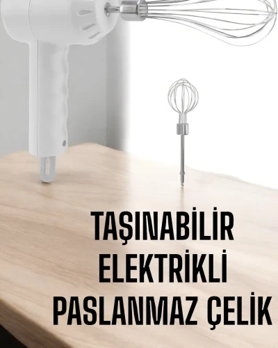 Mikser Çırpıcı Şarjlı Mini Taşınabilir Beyaz Tel Çırpıcı Paslanmaz Çelik