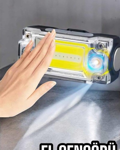 Beyaz Led Işık Sensörlü Kafa Lambası Lityum Batarya Led El Fenerli Şarjlı