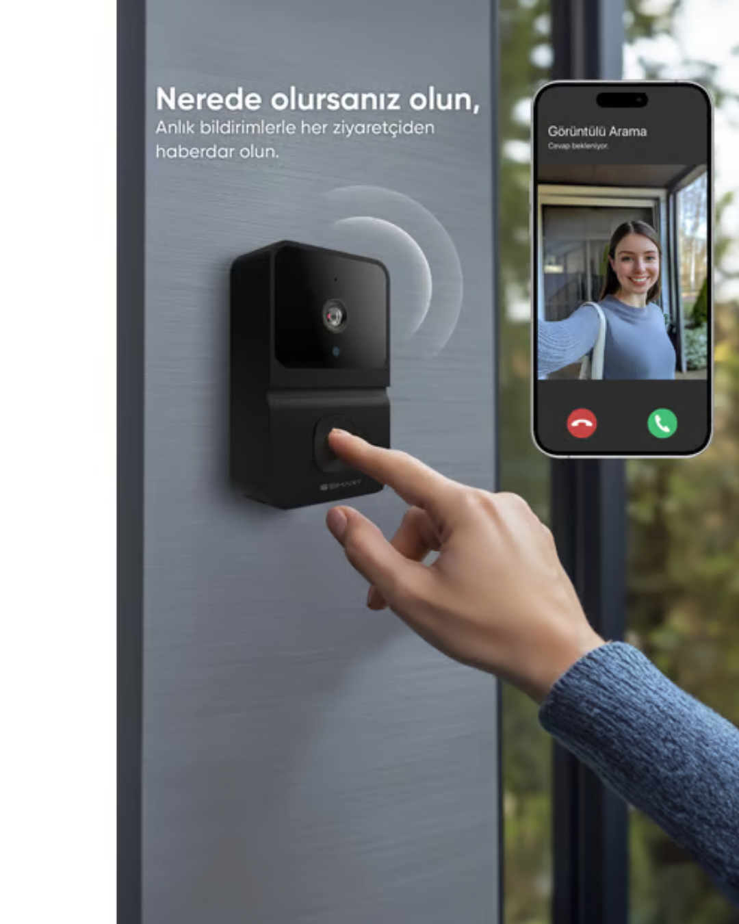 Mobil uygulama destekli akıllı kapı zili, gerçek zamanlı görüntü ve sesli iletişim özellikleriyle ev güvenliğini güçlendirir. Şarjlı bataryası ve kolay kurulumu sayesinde kullanıcı dostudur.