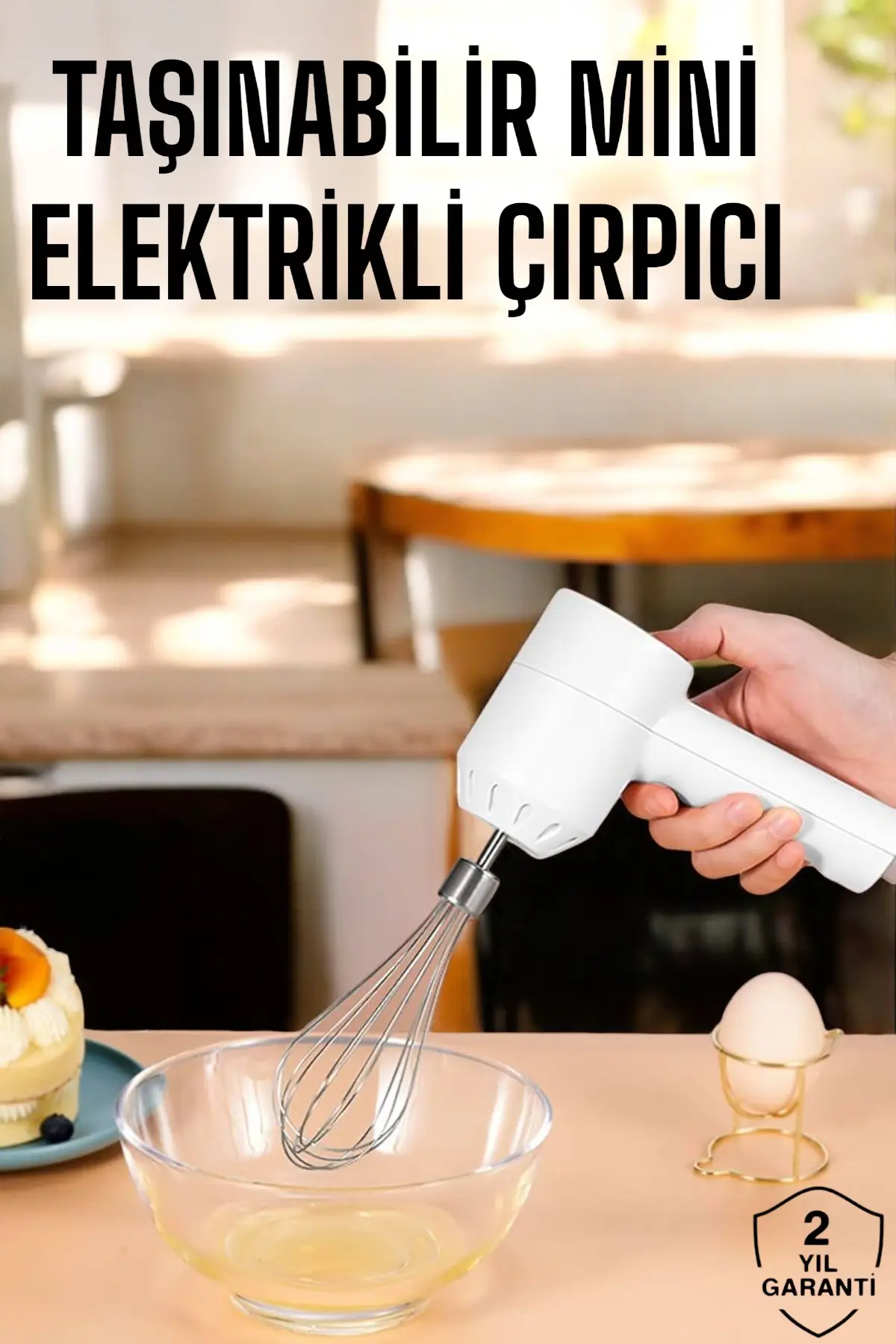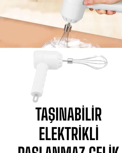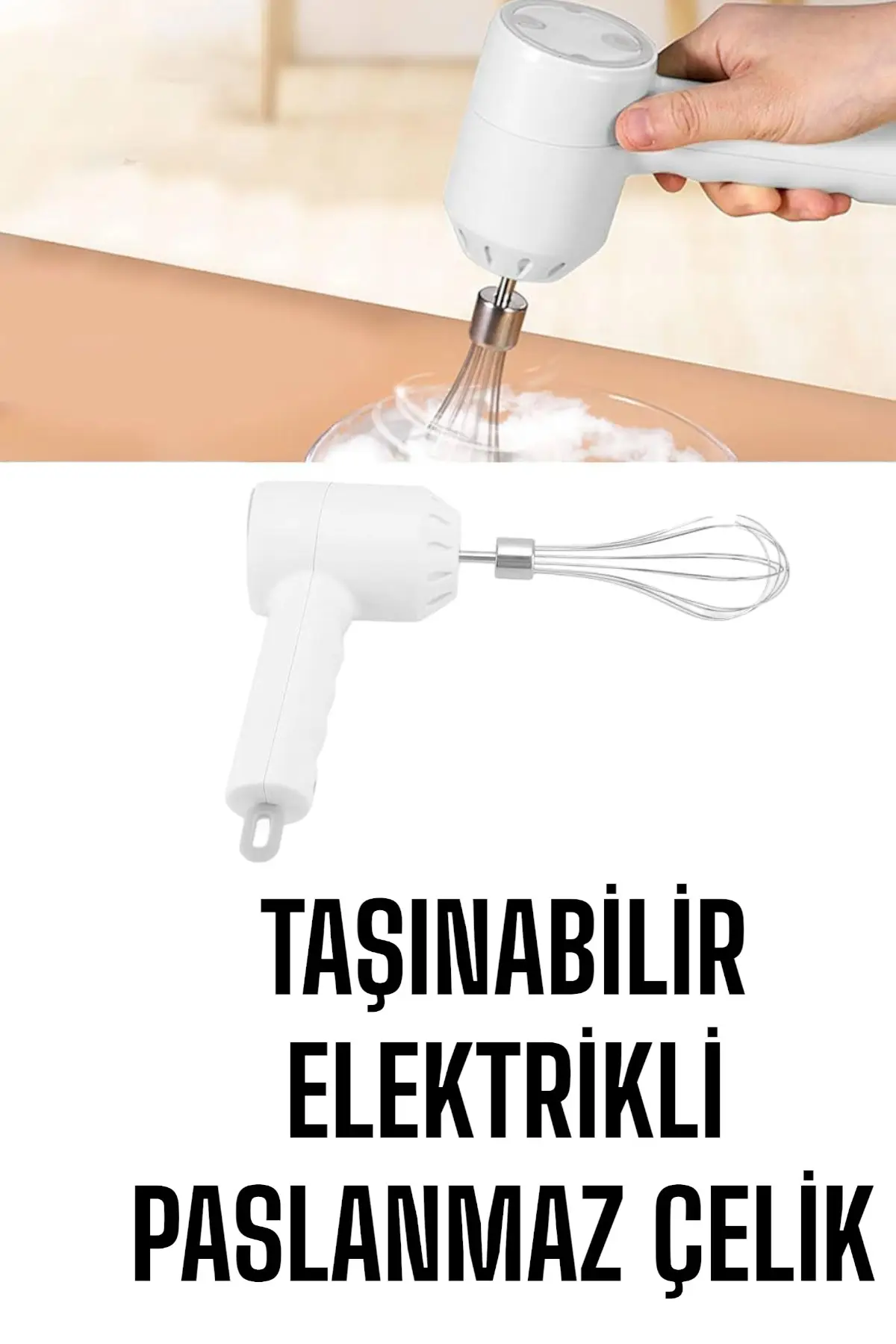 Mikser Çırpıcı Şarjlı Mini Taşınabilir Beyaz Tel Çırpıcı Paslanmaz Çelik