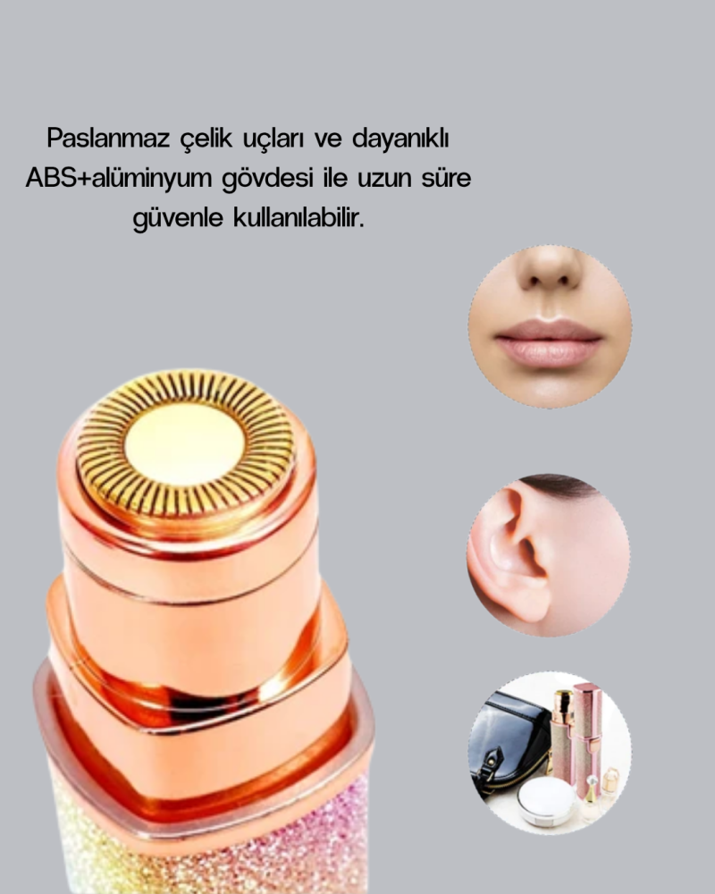 Yüksek hızlı 8000 RPM motor ile çalışan cihaz, tüyleri kökünden nazikçe alır ve pürüzsüz bir cilt görünümü sunar. Paslanmaz çelik bıçakları cilde zarar vermeden çalışır; böylece kızarıklık veya tahriş olmadan güvenle kullanılabilir.