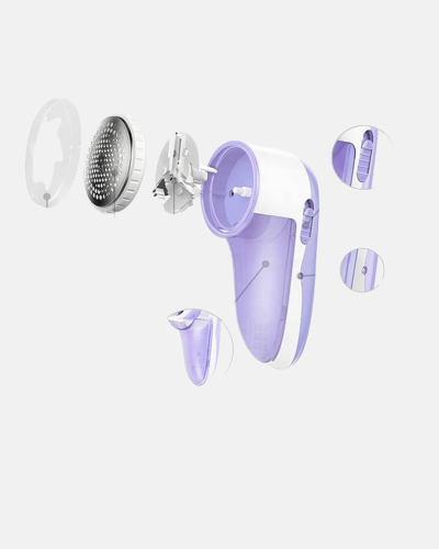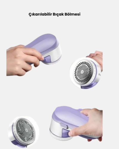 Çıkarılabilir atık haznesi hijyenik kullanım sağlar, bıçak bölmesi ise kolay temizlenebilir yapısıyla cihazın uzun ömürlü olmasına yardımcı olur. Arka kısmındaki anti-statik manuel fırça, hassas kumaşlarda nazik bir bakım sunar. Micro USB kablosu ile şarj edilerek kablosuz kullanılabilir.