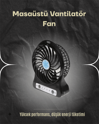 Şarjlı USB Fan – Masaüstü Mini Vantilatör, Taşınabilir, Işıklı, 3 Kademeli, Sessiz