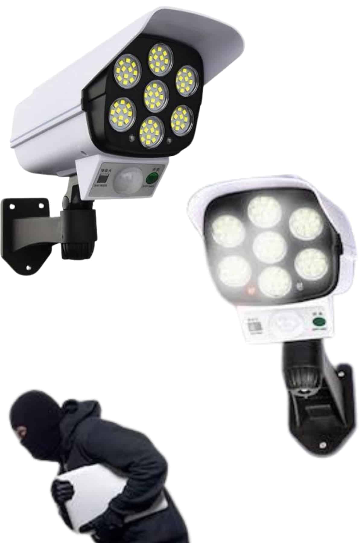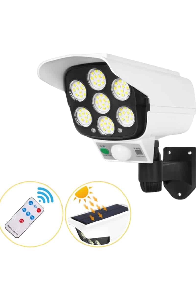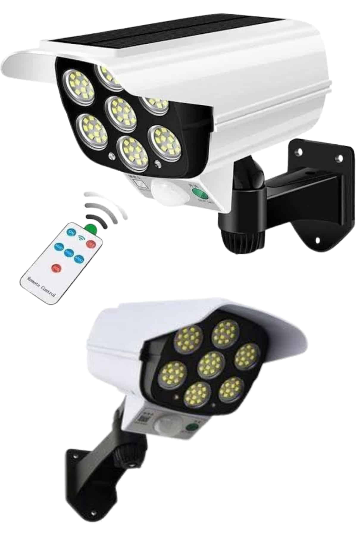 Kamera görünümüne sahip şık tasarımı, bahçenizde veya garajınızda güvenlik hissiyatı yaratırken, IP65 su geçirmez özelliği sayesinde her türlü hava koşulunda dayanıklıdır. Yağmur, kar veya şiddetli rüzgar gibi zorlu hava şartlarına karşı korumalıdır. Kumanda ile kontrol edilebilir olması, kullanım kolaylığı sağlar; açma, kapama veya ışık modlarını değiştirmek için uzaktan kumanda kullanabilirsiniz. Kablolu bağlantı gerektirmeyen bu ürün, duvar veya direk montajı ile rahatça kurulabilir. Dayanıklı ABS plastik ve alüminyum malzemeden üretilen ürün, uzun ömürlü ve çevre dostu bir çözüm sunar. Hem pratik hem de estetik bir güvenlik çözümü arayanlar için mükemmel bir tercihtir.