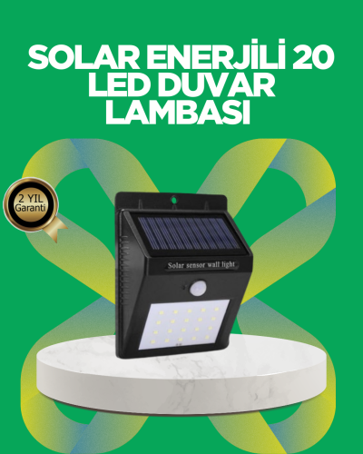 Solar Enerjili 20 LED Hareket Sensörlü Duvar Lambası