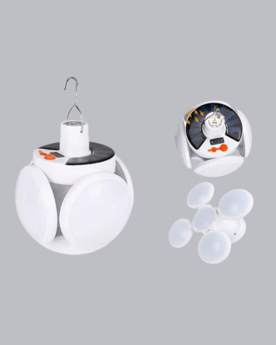 Bu 5 kanatlı solar kamp lambası, hem güneş enerjisiyle hem de USB üzerinden şarj edilebilen çift şarj sistemiyle her ortamda aydınlık sağlar. 45 güçlü LED ışığıyla geniş bir alanı aydınlatır. Katlanabilir tasarımı sayesinde ışık açısını dilediğiniz gibi ayarlayabilir, yönlendirebilirsiniz. 5 farklı ışık modu, ortam ihtiyacınıza göre ayarlanabilir. 2400 mAh lityum pili sayesinde tam şarjla 6-8 saat kesintisiz aydınlatma sunar. 5.5V polikristal güneş paneli sayesinde gün içinde şarj olur; ayrıca kutudan çıkan USB kablosu ile de kolayca şarj edilebilir. IP65 su geçirmezlik özelliği, dış mekanlarda güvenli kullanım sağlar. Bahçe, kamp, karavan, balkon veya acil durumlar için mükemmel bir çözümdür. Asma halkasıyla kolayca taşınabilir ve asılabilir. Enerji verimliliği, dayanıklılığı ve pratik tasarımıyla her evin ve kamp çantasının vazgeçilmezidir.