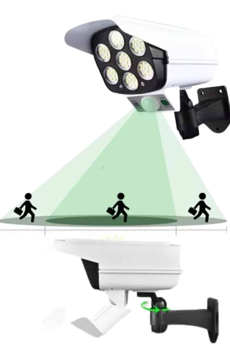 Bu güneş enerjili güvenlik ışığı, çevre dostu tasarımı ve pratik kullanımı ile hem güvenlik hem de dekoratif amaçlarla ideal bir çözümdür. Hem kamera görünümü hırsızları caydırma etkisi yaratır hem de bahçeniz için güçlü bir aydınlatma sunar. Dahili PIR hareket sensörü, 10 ila 20 feet mesafede hareketi algılayarak gece boyunca ışığın otomatik olarak yanmasını sağlar. Bu özellik, evinizin etrafındaki alanları güvenli hale getirir. Güneş paneli, güneş ışığını emerek şarj olur ve ışığın enerji ihtiyacını karşılar, böylece elektrik tüketimi ve çevreye olan etkisi minimuma iner. Pil kapasitesiyle de, düşük ışık modunda bile yaklaşık 40 saate kadar çalışma süresi sunar. Kurulumu oldukça basittir ve güneş paneli ve ışık kaynağının yönü 5 eksenli rotasyon sayesinde rahatça ayarlanabilir, böylece istediğiniz alanı verimli bir şekilde aydınlatabilirsiniz. IP66 su geçirmezlik standardına sahip olması, ürünün yağmur, kar gibi dış hava koşullarında bile dayanıklı olmasını sağlar. Bu ışık, güvenlik ihtiyacınızı karşılamakla kalmaz, aynı zamanda dış mekanlarınızı şık bir şekilde aydınlatarak, bahçeniz, verandanız, garajınız ya da yol kenarlarınıza estetik bir görünüm kazandırır.