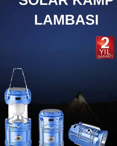 Solar Şarjlı Kamp Lambası Güneş Enerjili Kızaklı Kamp Feneri Çadır Feneri Led Işıldak