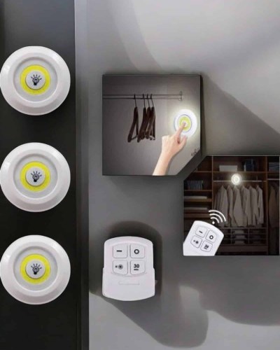 Spot Lamba Led Işık 3’lü Uzaktan Kumandalı Pilli Yapışkanlı Kablosuz