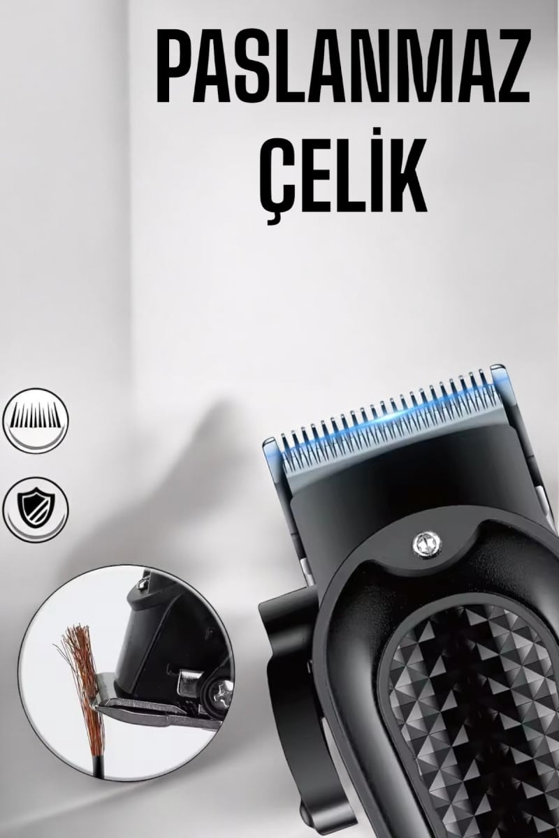 Şarjlı Paslanmaz Çelik Bıçaklı ve Kablosuz Saç Sakal Tıraş Makinesi