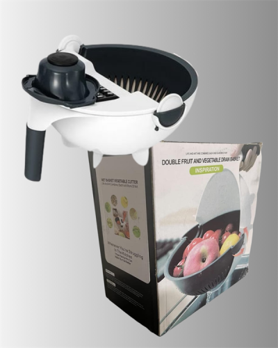 Rende bıçağının hemen altındaki döner süzgeçli hazne, doğranan malzemeleri toplar. Aynı zamanda sebzeleri yıkadıktan sonra süzmek için de kullanılabilir. El koruma aparatı sayesinde güvenli kullanım sağlar.