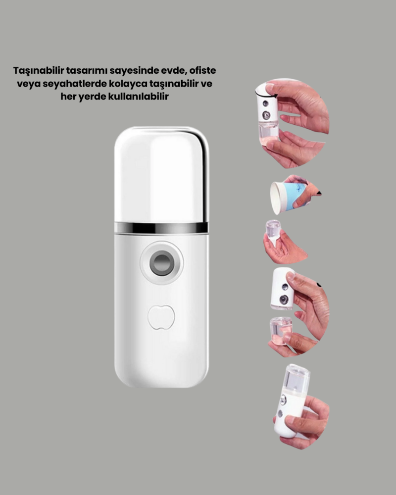 Bu taşınabilir akıllı nemlendirici, kompakt ve şık tasarımıyla her ortamda kullanılabilir.
