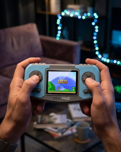 El tipi tasarımı sayesinde konsolu rahatça iki elinizle tutarak oyun oynayabilirsiniz. Ergonomik tuş yerleşimi uzun süreli kullanımda konfor sağlar. Yüksek kaliteli ekranı sayesinde oyun görüntüleri net ve canlı şekilde görüntülenir. Bu özellik özellikle klasik piksel oyunlarını daha keyifli hale getirir.