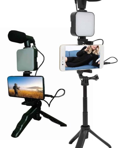 Akıllı Telefon Vlog Kiti Tripod Mini Mikrofonlu Telefon Tutucu