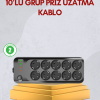 USB Type-C Destekli 10’lu Grup Priz Termal Korumalı 2m Kablo 2500W