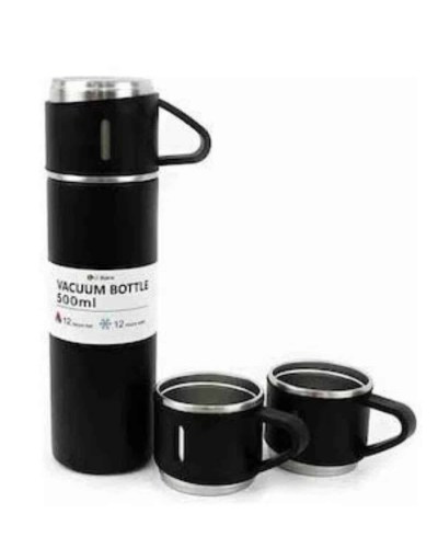 Termos Paslanmaz Çelik Termos Siyah Renk 3 Bardaklı Termos Seti