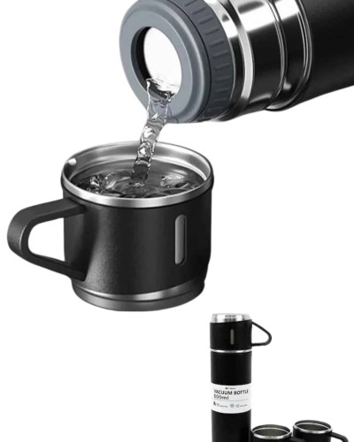Termos Seti Paslanmaz Çelik 3 Bardaklı Vakumlu Termos Set 500 Ml 12 Saate Kadar Isı Koruma