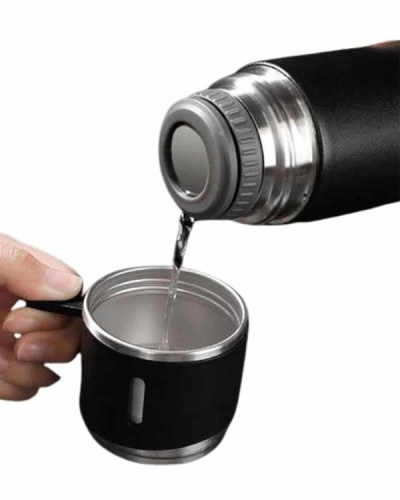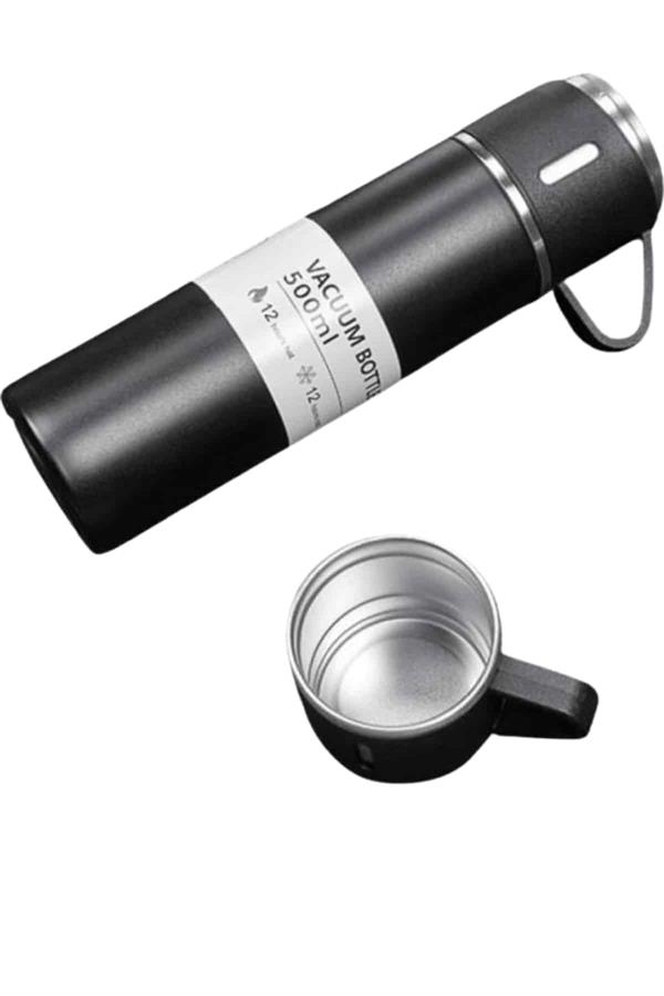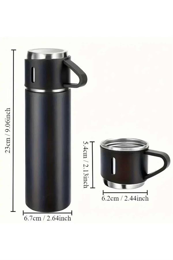 Isıyı Uzun Süre Koruyan 500 ml Termos Seti | Çelik Gövde, 2 Bardaklı, Hediye Kutulu