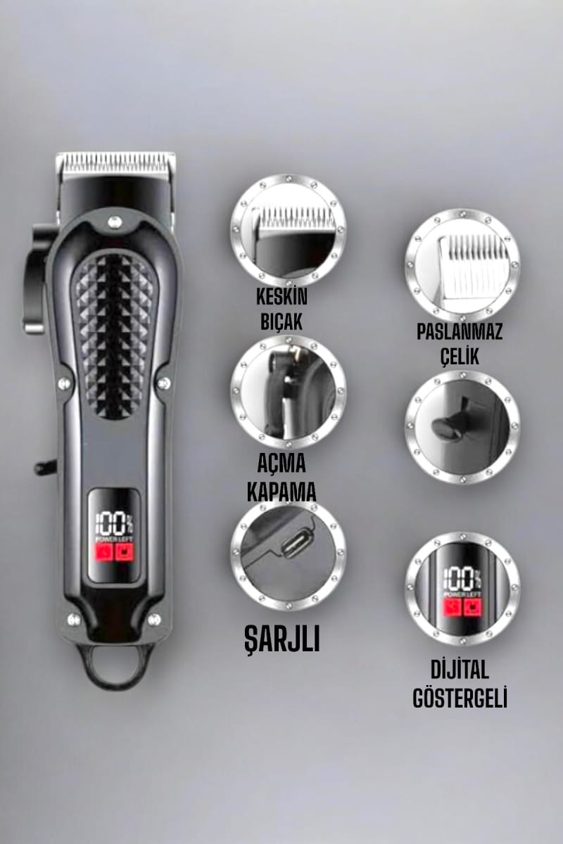 Profesyonel Şarjlı Saç ve Sakal Traş Makinesi Kolay Kullanım