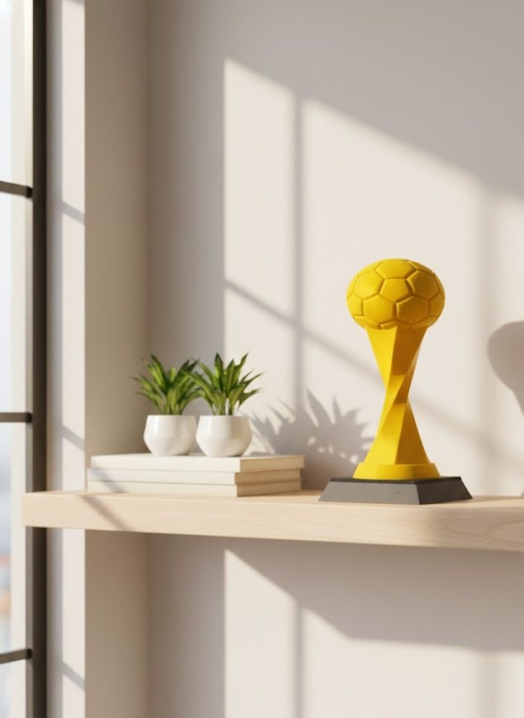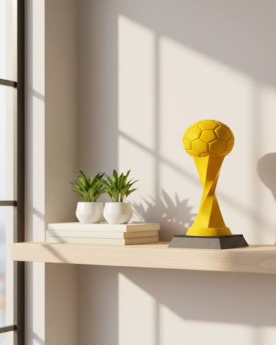 Toplu Kupa Sarı 21 cm, modern ve dikkat çekici tasarımıyla masa üstü dekorasyonlarına farklı bir hava katmak için özel olarak üretilmiştir. Spor temalı dekorları sevenler için ideal olan bu biblo, yüksek kalite malzemeden üretilmiş olup uzun yıllar formunu korur. Parlak sarı futbol topu detayına sahip estetik gövdesi, ödül hissi uyandıran güçlü bir görünüme sahiptir. Ev, ofis, çalışma odası, genç odası veya kupa koleksiyonlarında sergilenmek için mükemmel bir seçenektir. Hafif yapısı sayesinde kolay taşınabilir ve sağlam kaidesiyle her yüzeyde dengeli bir duruş sağlar. Hem dekoratif amaçlı hem de hediye olarak kullanıma uygundur. Spor tutkunu sevdiklerinize anlamlı ve şık bir armağan olarak sunabilirsiniz.