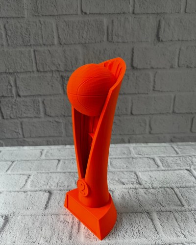 Turuncu Kupa 23 cm, spor temalı dekor sevenlerin koleksiyonlarına güçlü bir ekleme yapmak isteyecekleri şık bir tasarımdır. Parlak turuncu rengi, dikkat çekici duruşu ve basketbol toplu üst bölümü ile ortama modern bir enerji katar. Hafif ancak sağlam yapısıyla kolayca taşınabilir ve her yüzeyde dengede durur. Evde raf üzerinde, ofiste masa üzerinde veya spor alanlarında dekoratif obje olarak sergilenebilir. Ayrıca spor tutkunu çocuklar için motive edici bir masaüstü aksesuarı olarak da oldukça etkilidir. Doğum günü, özel gün veya spor temalı etkinliklerde hediye olarak verebileceğiniz estetik ve anlamlı bir seçimdir.