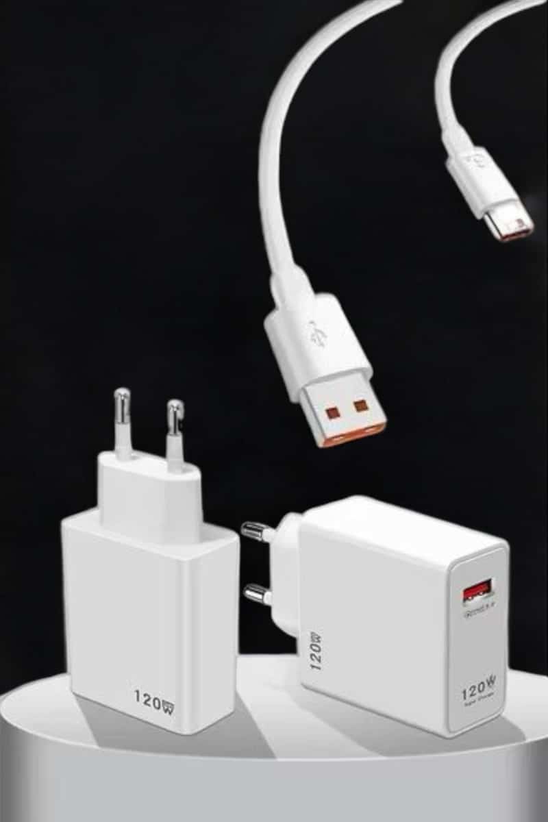 120W Şarj Aleti Hızlı Çift Turbo Şarj Aleti Seti Beyaz