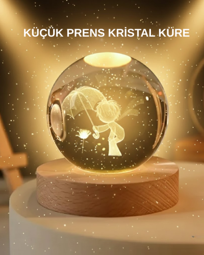 USB Gece Lambası LED 3D Küçük Prens Kristal Top Lambası, evinize masalsı ve romantik bir atmosfer katan özel bir dekor ürünüdür. 8 cm çapındaki kristal kürenin içinde lazer teknolojisi ile işlenmiş Küçük Prens figürü, kristalin berrak dokusunda adeta havada süzülüyormuş gibi görünür. Bu estetik detay, ürünü sıradan bir gece lambasının çok ötesine taşıyarak hem yetişkinler hem çocuklar için büyüleyici bir ışık kaynağı haline getirir.