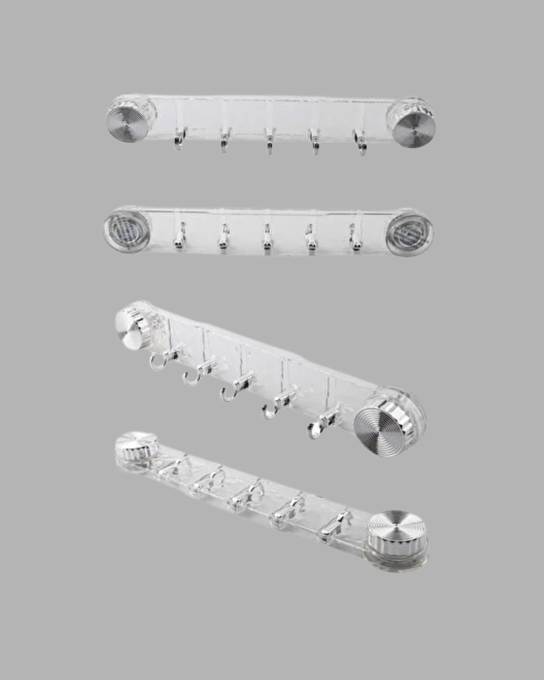 Vakumlu ve yapışkanlı askı aparatı, mutfak ve banyo alanlarında düzeni kolayca sağlamak için tasarlanmıştır. Beş askı bölmesi sayesinde farklı eşyaları bir arada ve düzenli şekilde asmanıza yardımcı olur. Günlük kullanımda sık ihtiyaç duyulan ürünlerin pratik şekilde organize edilmesini sağlar.