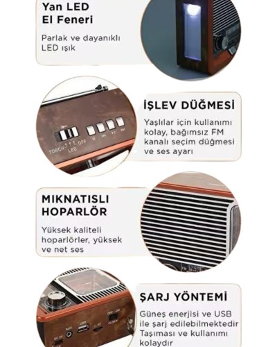 Vintage Nostaljik Radyo AUX USB SD Kart Girişli Şarjlı Bluetooth Bağlantılı