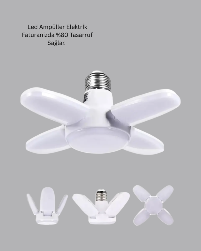 Katlanabilir 4 kollu pervane LED ampül, modern aydınlatma ihtiyaçlarına güçlü bir yanıt verir. 6000 lumen ışık gücü ile geniş alanları homojen şekilde aydınlatır. 60 Watt gücü, yüksek performansı düşük enerji tüketimiyle birleştirir.