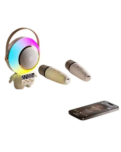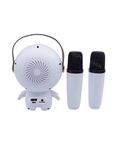 Mini Karaoke Astronot Bluetooth Speaker 2 Adet Mikrofonlu Renkli Işıklı Kablosuz Karaoke Hoparlör