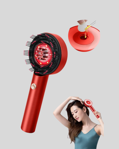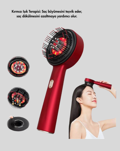 Saç ve saç derisi bakımında yenilikçi bir çözüm sunan bu elektrikli masaj tarak, titreşimli masaj, kırmızı ışık terapi ve mikro akımı bir araya getirir. Düzenli kullanımda saç dökülmesini azaltmaya, saç derisini rahatlatmaya ve saçların daha güçlü uzamasına yardımcı olur.