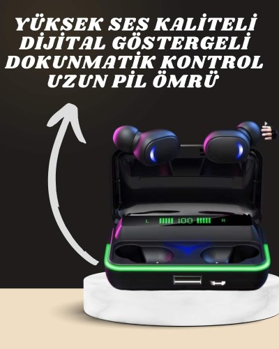 Powerbank özellikli şarj kutusu, kulaklıkları defalarca şarj edebilme avantajı sunarak uzun süreli kullanım imkanı sağlar. LED şarj göstergesi, aniden kapanmaları önleyerek kesintisiz bir deneyim sunar. Su geçirmez yapısı, kulaklığın dayanıklılığını artırırken, metal-ABS malzeme kalitesi uzun ömürlü kullanım sağlar.