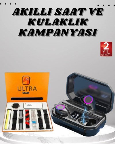 Yeni Nesil Akıllı Saat ve Bluetooth Kulaklık Kampanyası Dijital Göstergeli Powerbankli