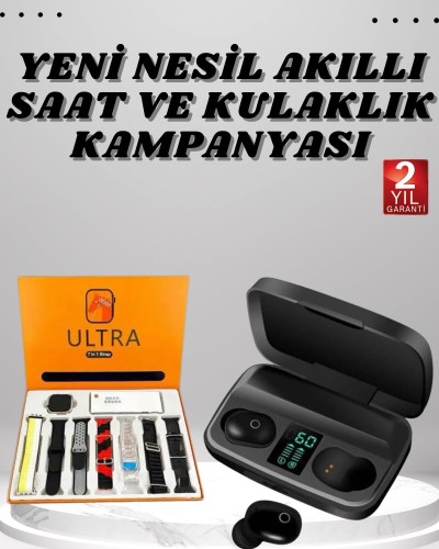 Yeni Nesil Akıllı Saat ve Bluetooth Kulaklık Kampanyası Dokunmatik Kare 7 Kordonlu