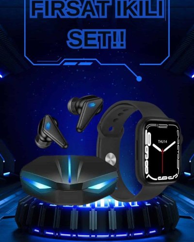 KULAKLIK:K55 Bluetooth kulaklık, hem estetik hem de teknik özellikleriyle kullanıcılarına üstün bir deneyim sunan bir cihazdır. 105 dB hassasiyet seviyesine sahip olan bu kulaklık, güçlü ve net bir ses performansı sağlar. Siyah renkli tasarımı, modern ve şık bir görünüm sunarak dikkat çeker.Pasif gürültü engelleme özelliği, dış ortam seslerini minimuma indirir ve bu sayede müzik dinlerken veya telefon görüşmeleri yaparken net bir ses deneyimi sunar. 20 Hz – 20 kHz frekans aralığı, geniş bir ses yelpazesine ulaşmanıza olanak tanır; düşük baslardan yüksek tizlere kadar dengeli bir ses kalitesi sunar. LED aydınlatma tasarımı, ürünün hem oyuncular hem de günlük kullanıcılar için çekici bir seçenek olmasını sağlar.Kulaklık, su sıçramalarına karşı dayanıklı IPX5 koruma sınıfına sahiptir, bu da spor yaparken veya hafif yağmur altında bile güvenle kullanılabileceği anlamına gelir. Dokunmatik kontrol paneli, çağrı yanıtlama, müzik değiştirme ve ses ayarlama gibi işlemleri kolayca yapmanıza imkan tanır. Bu özellik, kullanıcıların eller serbest bir şekilde cihazı kontrol etmesini sağlar ve büyük bir kullanım kolaylığı sunar.Kulaklığın her biri yalnızca 8 gram ağırlığındadır, bu da uzun süreli kullanımlarda bile konfor sağlar. Şarj kutusu, 64 gram ağırlığıyla oldukça hafif ve taşınabilir bir yapıya sahiptir. Bluetooth 5.0 teknolojisi, hızlı ve kararlı bir bağlantı sağlar, aynı zamanda düşük enerji tüketimi sayesinde pil ömrünü optimize eder.K55 kablosuz LED ışıklı Bluetooth kulaklık, kullanıcı dostu özellikleri, şık tasarımı ve dayanıklılığıyla hem oyun oynarken hem de günlük kullanımda mükemmel bir seçimdir.AKILLI SAAT:Bu akıllı saat, modern teknoloji ile günlük hayatınızı kolaylaştıracak özellikleri bir araya getiren yenilikçi bir cihazdır. Tüm iOS ve Android akıllı telefonlarla uyumlu olan bu saat, geniş bir kullanıcı kitlesine hitap eder. Siri sesli asistan desteği sayesinde sesli komutlarla işlemlerinizi hızlıca gerçekleştirebilirsiniz. Bluetooth bağlantısı aracılığıyla çağrı yapma, çağrılara cevap verme veya reddetme, sık görüşülenler listesini yönetme, çağrı geçmişini görüntüleme ve arayan kimliğini görme gibi birçok özelliği destekler. Ayrıca, SMS ve diğer uygulamalardan gelen bildirimleri görüntüleme ve okuma imkanı sunar.44 mm paslanmaz çelik kasası, dayanıklılığı ve şıklığı bir arada sunar. 240×285 piksel çözünürlükteki, köşeden köşeye tam gelişmiş dokunmatik OLED ekranı, parlak ve net bir görüntü deneyimi sağlar. 280 mAh Li-Po bataryası, uzun süreli kullanım sunarak gün boyu yanınızda olmasını garanti eder. 128 MB bellek kapasitesi ve aktif iki yan tuşuyla kullanıcı dostu bir arayüz sunar.Sağlık ve spor odaklı özellikleriyle öne çıkan bu cihaz, günlük aktivitelerinizi ve sağlık durumunuzu takip etmenize yardımcı olur. Pedometre özelliğiyle egzersiz süresi, kat edilen mesafe ve yakılan kalori gibi verilere ulaşabilirsiniz. EKG, kan basıncı, tansiyon ölçümü ve kandaki oksijen oranını ölçme gibi üçlü sağlık takibi özellikleri sayesinde sağlığınızı yakından izleyebilirsiniz. Uyku takibi, hava durumu, kronometre, alarm, çağrı hatırlatma, hareketsizlik ve su içme hatırlatmaları gibi işlevlerle hayatınızı kolaylaştırır.Spor severler için, koşu, bisiklet, kuvvet antrenmanı, basketbol, tenis, voleybol ve futbol gibi çoklu spor modları sunar. Veri (DATA) sekmesi sayesinde günlük ve anlık sağlık verilerinizi analiz edebilirsiniz. Uygulama üzerinden sınırsız saat kadranı seçebilir ve ekranınıza dilediğiniz fotoğrafı yerleştirebilirsiniz. Akıllı bileklik hareket sensörü, ekranın kolayca açılıp kapanmasını sağlar.10 kişiye kadar hızlı arama özelliği, değiştirilebilir kordon seçeneği ve Türkçe dahil 23 farklı dil desteğiyle kişiselleştirilebilir bir deneyim sunar. Uçak modu ve rahatsız etme modu gibi işlevlerle kullanımınızı daha verimli hale getirebilirsiniz. Saat üzerinden müzik dinleme, uzaktan fotoğraf çekme gibi eğlenceli özellikler de cihazın dikkat çeken detayları arasındadır.Şıklığı, dayanıklılığı ve fonksiyonelliği bir araya getiren bu akıllı saat, hem teknoloji tutkunları hem de aktif bir yaşam tarzını benimseyen kullanıcılar için mükemmel bir tercihtir.