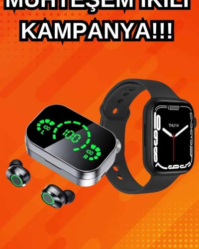 KULAKLIK:Dokunmatik kontrol özelliği sayesinde müziklerinizi ve çağrılarınızı kolayca yönetebilirsiniz. Dahili mikrofonu ile net görüşmeler yaparak, eller serbest deneyiminin keyfini çıkarın. Suya ve tere karşı dayanıklı yapısı sayesinde, spor aktivitelerinizde veya yağmurlu havalarda rahatlıkla kullanabilirsiniz. Çift telefon desteği ile iki cihaz arasında kesintisiz geçiş yaparak, bağlantıda kalın. Aktif gürültü engelleme (ANC) teknolojisi ile dış dünyanın gürültüsünü filtreleyerek, müziğinize tam odaklanabilirsiniz.AKILLI SAAT:Bu akıllı saat, modern teknoloji ile günlük hayatınızı kolaylaştıracak özellikleri bir araya getiren yenilikçi bir cihazdır. Tüm iOS ve Android akıllı telefonlarla uyumlu olan bu saat, geniş bir kullanıcı kitlesine hitap eder. Siri sesli asistan desteği sayesinde sesli komutlarla işlemlerinizi hızlıca gerçekleştirebilirsiniz. Bluetooth bağlantısı aracılığıyla çağrı yapma, çağrılara cevap verme veya reddetme, sık görüşülenler listesini yönetme, çağrı geçmişini görüntüleme ve arayan kimliğini görme gibi birçok özelliği destekler. Ayrıca, SMS ve diğer uygulamalardan gelen bildirimleri görüntüleme ve okuma imkanı sunar.44 mm paslanmaz çelik kasası, dayanıklılığı ve şıklığı bir arada sunar. 240×285 piksel çözünürlükteki, köşeden köşeye tam gelişmiş dokunmatik OLED ekranı, parlak ve net bir görüntü deneyimi sağlar. 280 mAh Li-Po bataryası, uzun süreli kullanım sunarak gün boyu yanınızda olmasını garanti eder. 128 MB bellek kapasitesi ve aktif iki yan tuşuyla kullanıcı dostu bir arayüz sunar.Sağlık ve spor odaklı özellikleriyle öne çıkan bu cihaz, günlük aktivitelerinizi ve sağlık durumunuzu takip etmenize yardımcı olur. Pedometre özelliğiyle egzersiz süresi, kat edilen mesafe ve yakılan kalori gibi verilere ulaşabilirsiniz. EKG, kan basıncı, tansiyon ölçümü ve kandaki oksijen oranını ölçme gibi üçlü sağlık takibi özellikleri sayesinde sağlığınızı yakından izleyebilirsiniz. Uyku takibi, hava durumu, kronometre, alarm, çağrı hatırlatma, hareketsizlik ve su içme hatırlatmaları gibi işlevlerle hayatınızı kolaylaştırır.Spor severler için, koşu, bisiklet, kuvvet antrenmanı, basketbol, tenis, voleybol ve futbol gibi çoklu spor modları sunar. Veri (DATA) sekmesi sayesinde günlük ve anlık sağlık verilerinizi analiz edebilirsiniz. Uygulama üzerinden sınırsız saat kadranı seçebilir ve ekranınıza dilediğiniz fotoğrafı yerleştirebilirsiniz. Akıllı bileklik hareket sensörü, ekranın kolayca açılıp kapanmasını sağlar.10 kişiye kadar hızlı arama özelliği, değiştirilebilir kordon seçeneği ve Türkçe dahil 23 farklı dil desteğiyle kişiselleştirilebilir bir deneyim sunar. Uçak modu ve rahatsız etme modu gibi işlevlerle kullanımınızı daha verimli hale getirebilirsiniz. Saat üzerinden müzik dinleme, uzaktan fotoğraf çekme gibi eğlenceli özellikler de cihazın dikkat çeken detayları arasındadır.Şıklığı, dayanıklılığı ve fonksiyonelliği bir araya getiren bu akıllı saat, hem teknoloji tutkunları hem de aktif bir yaşam tarzını benimseyen kullanıcılar için mükemmel bir tercihtir.